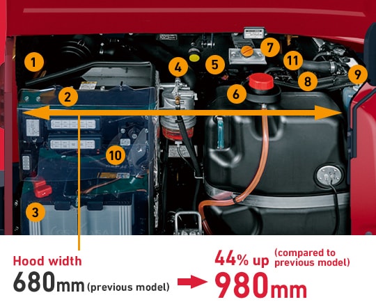 A large hood and organized layout means speedy daily inspections and maintenance