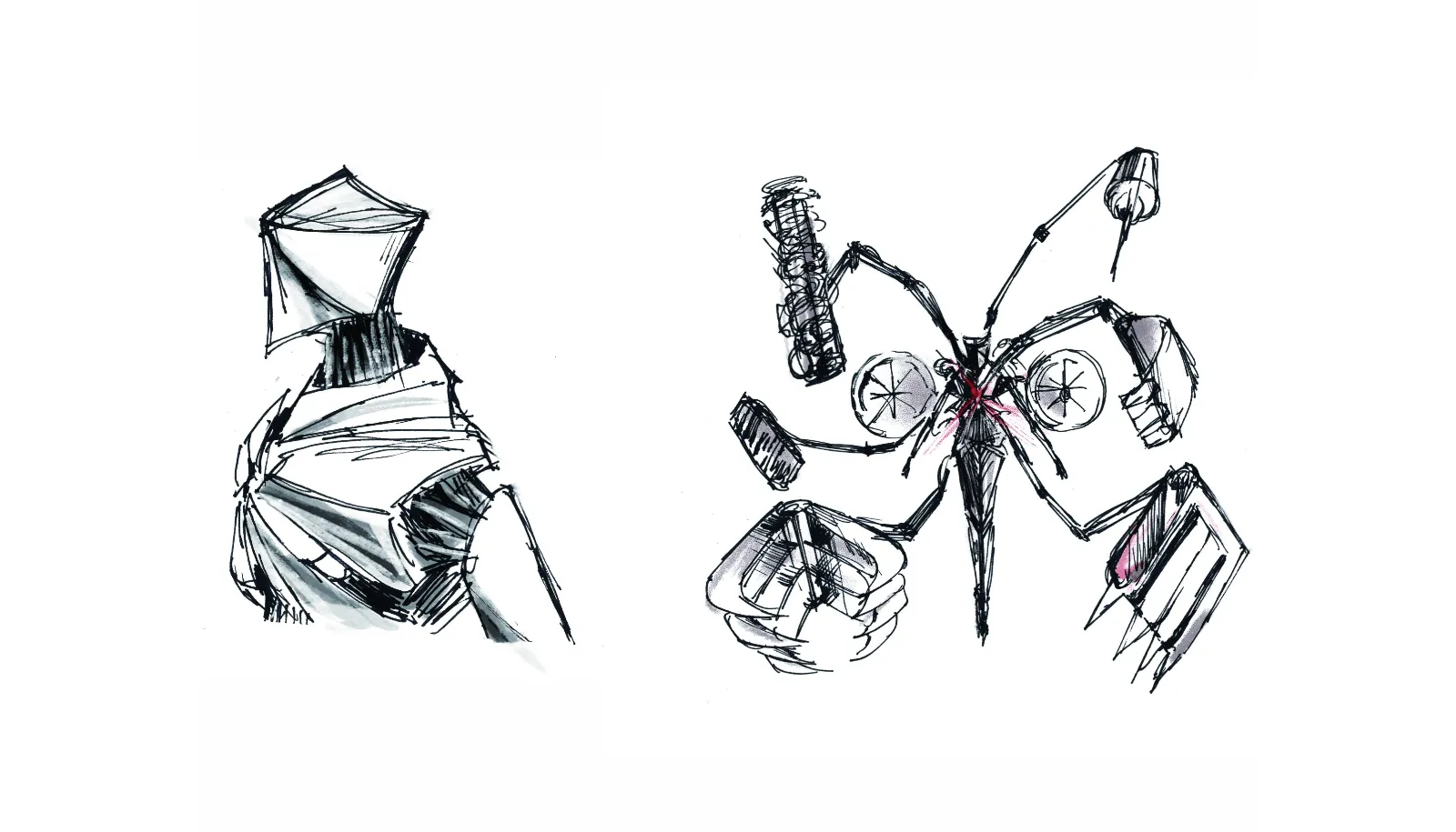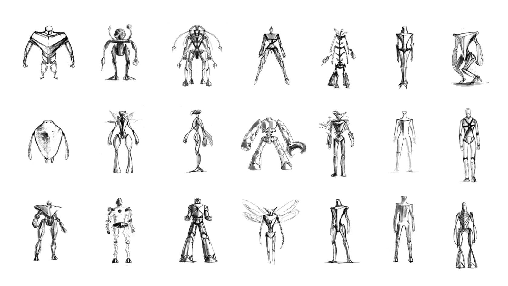A partir de numerosos bocetos de ideas, se seleccionó un diseño humanoide.