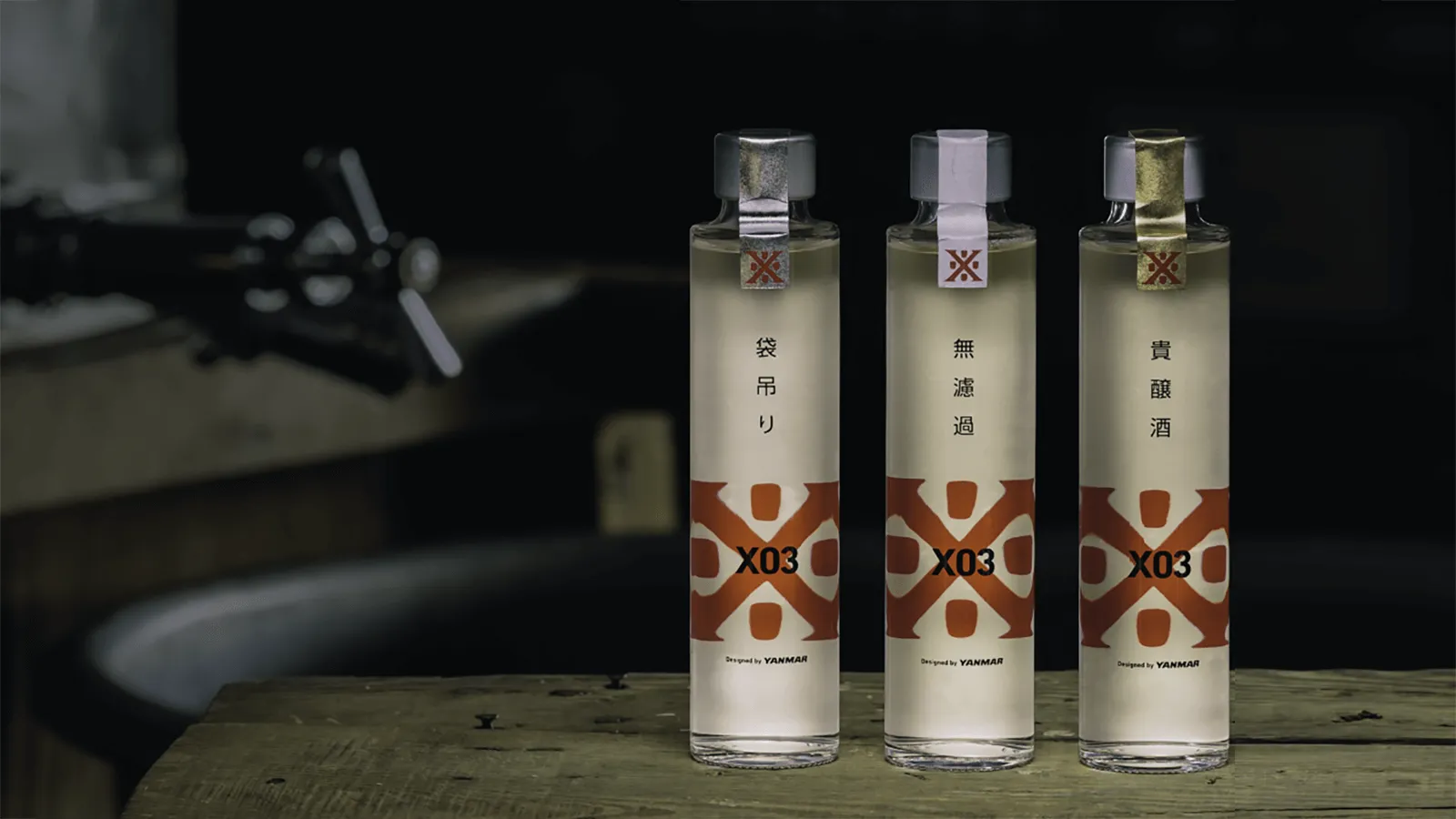 X03 resalta visualmente las diferencias en la elaboración del sake con una botella transparente que revela el color del sake en sí.