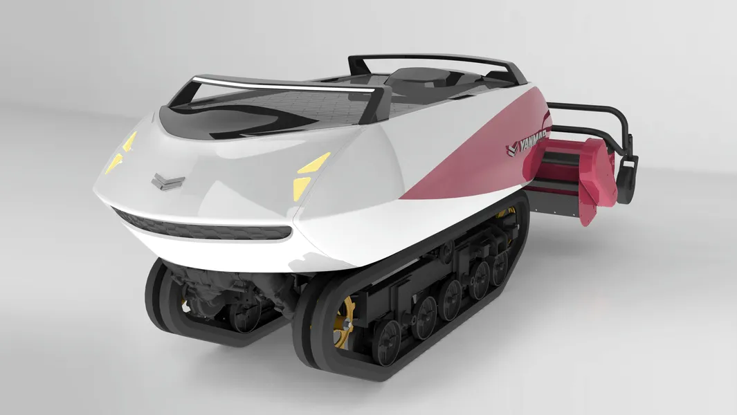 Un tractor de diseño conceptual desarrollado con una filosofía de diseño innovadora para la agricultura de 2035. Yanmar, con su larga tradición de crear maquinaria que apoya a las personas y resiste entornos exigentes, expresa este diseño con la filosofía de "Suavidad y dureza".