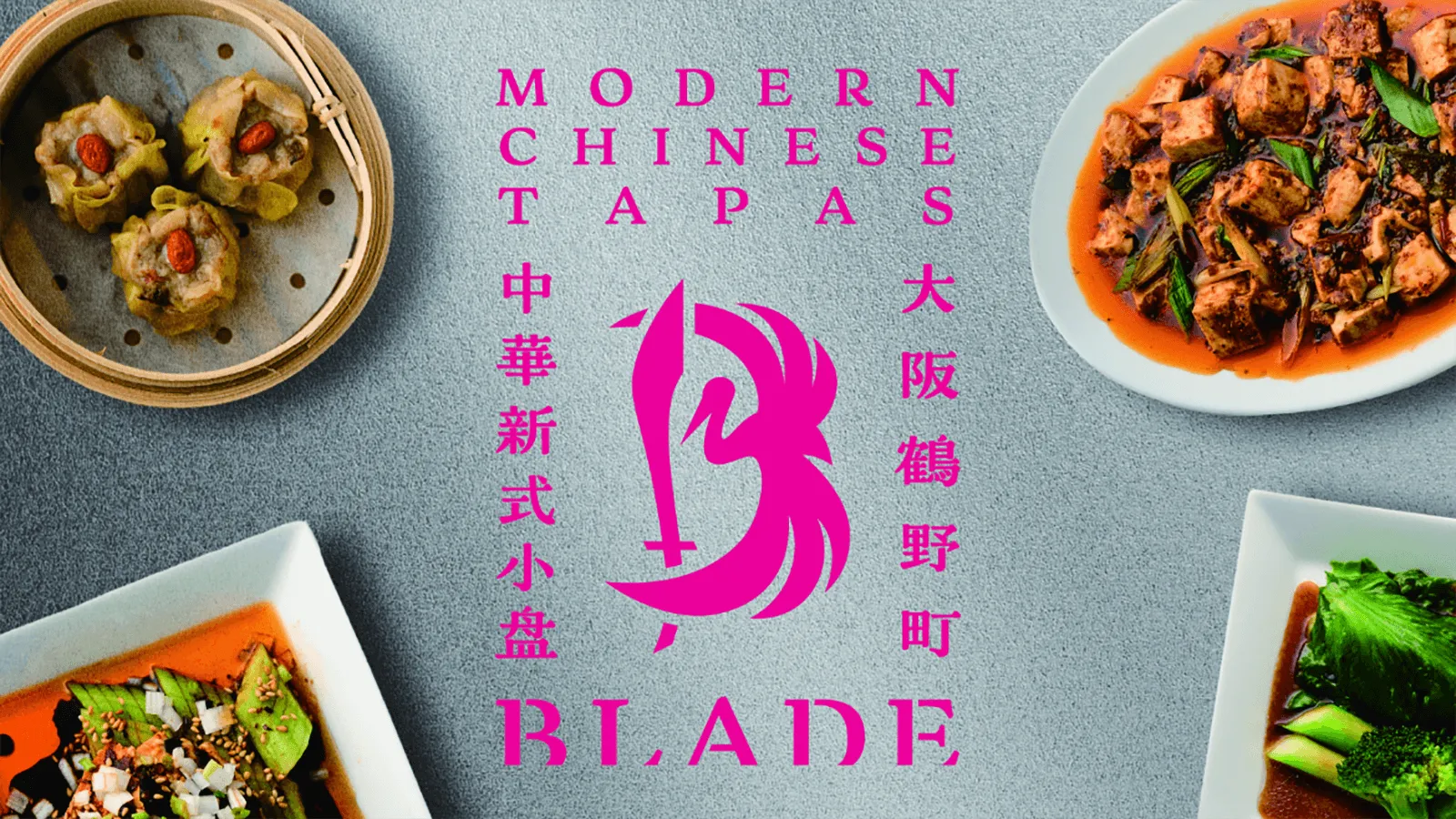 Inspirado por el nombre del restaurante, "Blade", y su ubicación en Tsuruno-cho (que significa "ciudad de las grullas"), Yanmar Design creó un logotipo con un cuchillo de chef chino y un motivo de grulla, extendiendo el diseño al menú y la decoración interior.