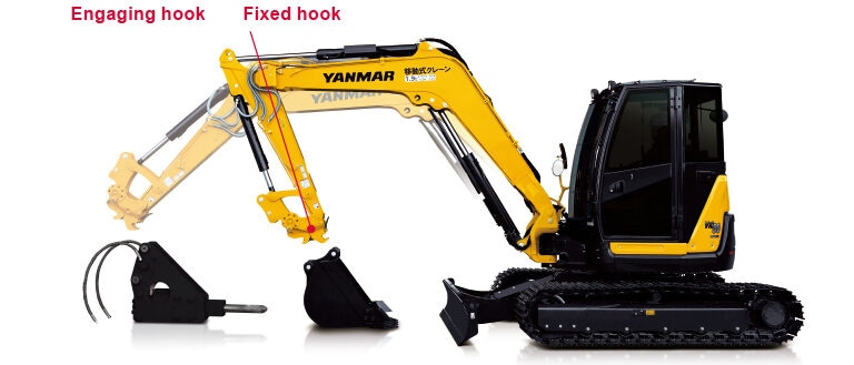 * The images shown here are for promotional purposes. * The image may differ from the actual model on sale. * The machine in the picture is equipped with optional parts. * Ground the bucket when leaving the operator's seat.