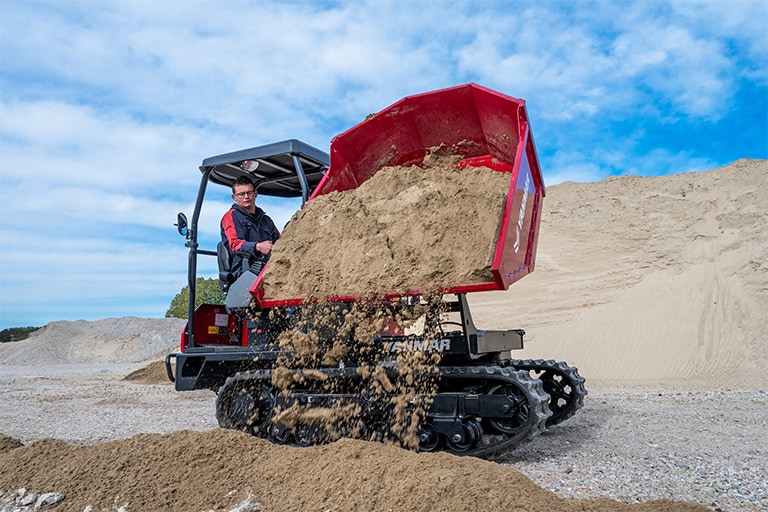 Chez Yanmar, nous avons toujours une longueur d’avance en matière de compacité et le Yanmar dumper C30R-3TV ne fait pas exception à la règle. Avec une largeur totale de seulement 1,5 mètre, il peut fonctionner même dans les pires conditions hivernales. Sa capacité de braquage à 360 ° améliore l’efficacité et la productivité. Et, avec sa longueur totale de seulement 3,64 mètres, le C30R-3TV est facilement transporté sur un nouveau site. Malgré ces dimensions compactes, la machine offre une charge utile impressionnante de 1,50 m3 avec dôme.