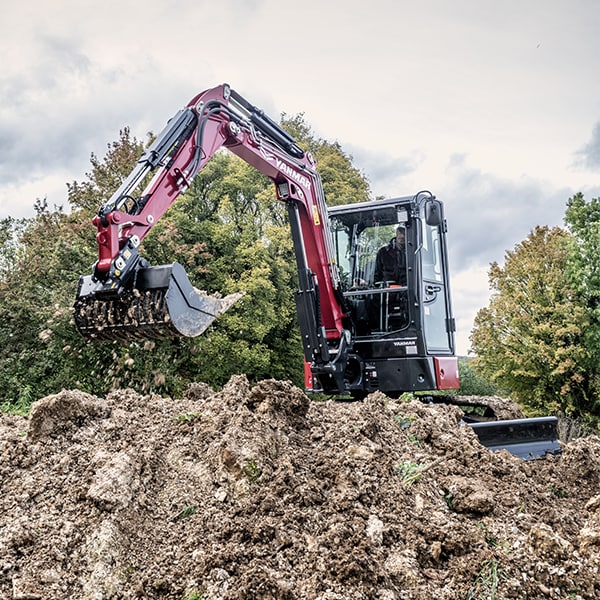 La ViO33-7 est conçue pour offrir une portée de travail exceptionnelle, de la polyvalence et une visibilité améliorée pour l’opérateur. Elle offre un déport de flèche de 71 degrés vers la gauche et de 52 degrés vers la droite, permettant un travail efficace et productif dans différentes positions. La puissance accrue pour les travaux de remblayage et la facilité d’utilisation améliorée du déport sur les pentes améliorent davantage ses performances, donnant à la mini-pelle les capacités nécessaires pour effectuer des tâches exigeantes.