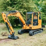 Supporting this work is a fleet of five Yanmar SV60 mini excavators, wrapped in neon orange to match Lantra’s bold branding. The machines were supplied by Field & Forest – a specialist dealer based in central Scotland with deep roots in forestry, and a trusted partner for Yanmar CE.