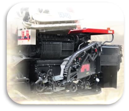 Equipped with a 3318cc De-Tier 3 (No regulation) 4-cylinder engine, it delivers high power output of 68.3PS and excellent combustion efficiency. Even when the load on the traveling or threshing section fluctuates, the engine output is instantly and automatically controlled by computer control. The engine speed is always kept constant, ensuring stable threshing and separating performance. No accelerator operation is required, and the rotation speed can be set simply by operating a switch.