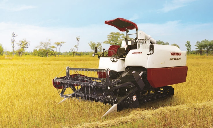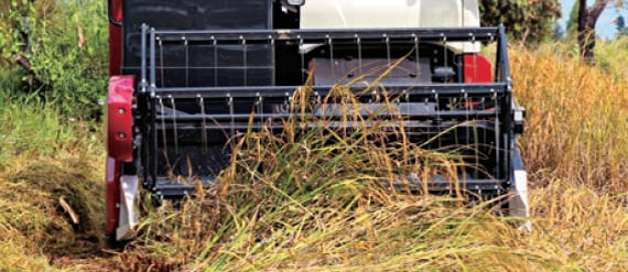 The Yanmar AW70GW combine harvester performs harvesting not only at high speed, but also ore efficiently, ensuring abundant harvests even with loadged rice plants.