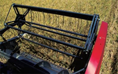 Uses a chain-driven reel enabling easy carrying of loads and powerful picking up of lodged rice plants.