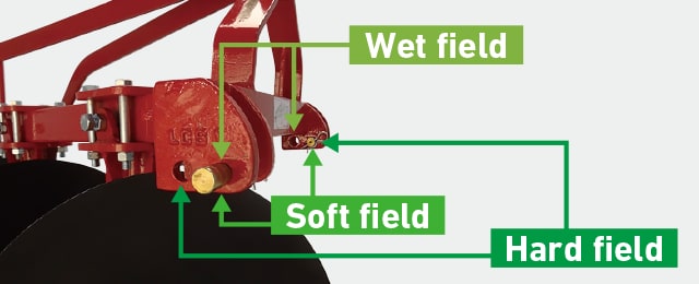 By changing the mounting pin position of disc plow, you can work in any condition of field including wet, soft, and hard soil.