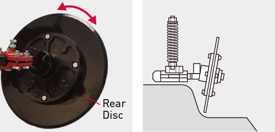 Adjusting the rear disc angle and letting the rear disc engage the soil better to prevent rattling of the machine.