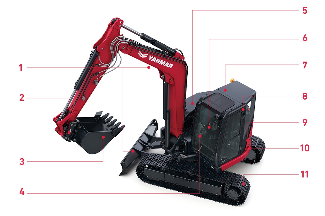 - *1Roll-Over Protective Structure (ROPS): A structure to protect the operator wearing a seat belt, in case the machine rolls over.