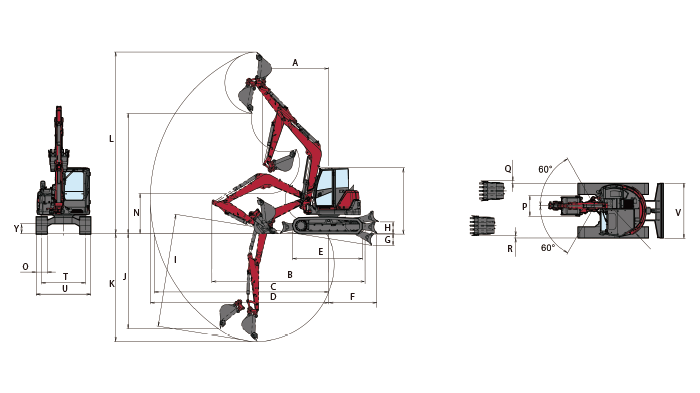 Boom swing enables parallel digging to a wall.