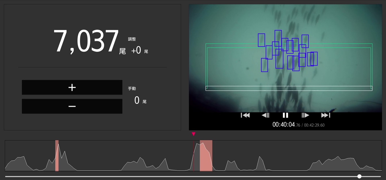 In fish farming, it is essential to know the number of fish inside each net in order to control production volume and the amount of feed used. Furthermore, in recent years as part of a drive towards more sustainable resource management, fishing vessels are required to accurately report the number of young pacific bluefin tuna caught in the wild, which end up being used for breeding at fish farms. Current methods are laborious and time-intensive requiring manual counting of the total number of fish caught, and visually counting underwater images when moving the fish to aquaculture nets.