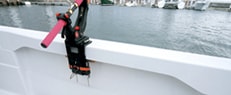 A walk-around type that can move smoothly around the center cabin, which is ideal for fishing. The sidewalk has a sufficient aisle width for easy access between decks.