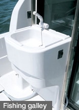 At the rear of the cabin, you can set a fishing galley that is convenient for various purposes such as hand washing.