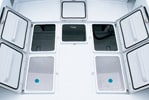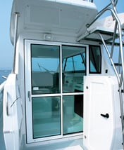 Rest room has been installed behind the cabin, and an electric marine toilet is standard equipment.