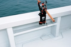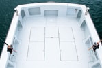 We have secured a wide and flat space, and functionally arranged two large cages and a storage compartment on the deck. In addition, a transom gate is standard equipment on the port rear.