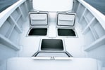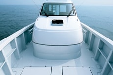 A large deck space is secured, and three convenient storage compartments are functionally laid out. A bow pulpit is also standard equipment.