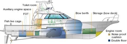 Yanmar's high-performance engine boasts high horsepower and excellent durability. There is no waste in combustion efficiency from low speed range to high speed range, and stable running is possible and it is economical. In addition, a surprisingly high ship speed of 35 knots * has been achieved (when 6HYS-WET is installed). In addition, the 1000L fuel tank equipment allows for long-term and long-distance navigation.