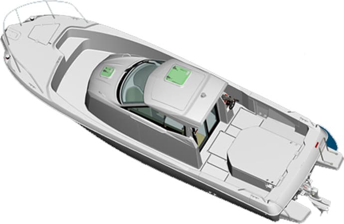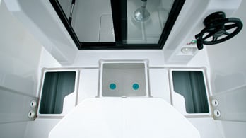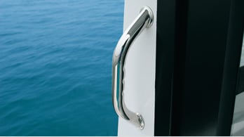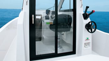 The rear door ensures safety and comfort both when moored and when sailing. Its large size allows for an easy access as well as lets in sufficient daylight.