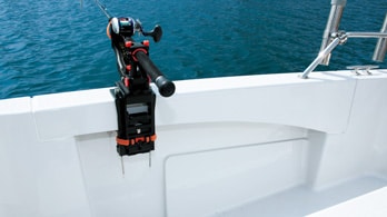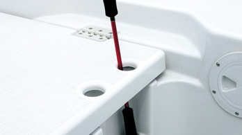 Rod holders are located on both sides of the engine room hatch.