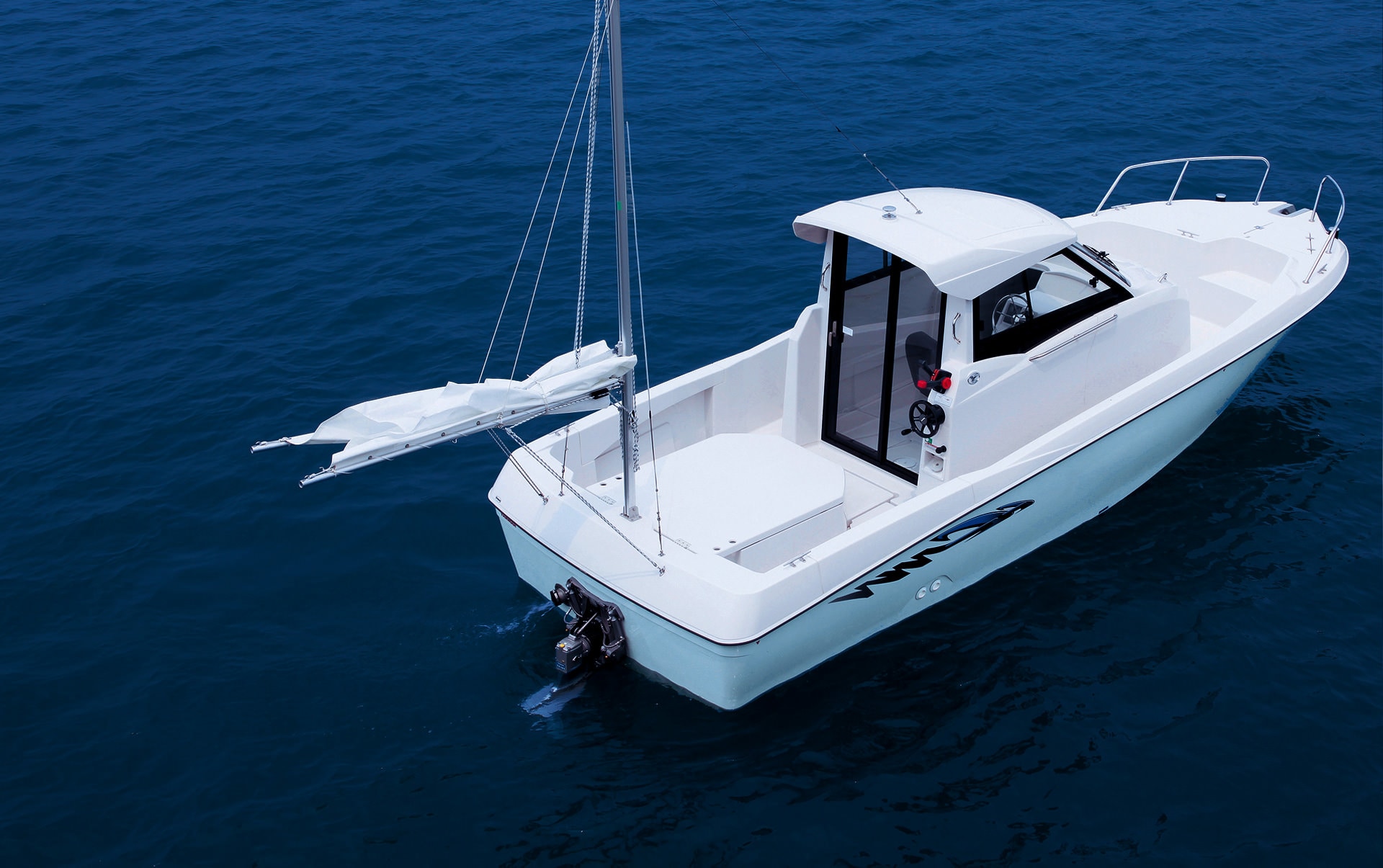 An open bulwark is designed on both sides of the aft deck for easy retrofitting. The bulwark height is optimized for safety and ease of fishing. In addition, the stern top rail's shape allows for a spanker installation.