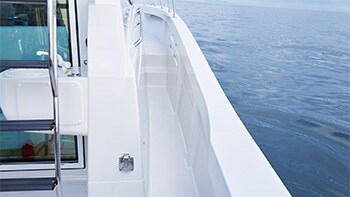 A spacious deck-integrated bowsprit design ensures that there is a plenty of space for an enjoyable fishing experience. A highly-placed bow pulpit makes sure that you easily get that perfect casting every time. Also, the side deck can be used as a fishing space.