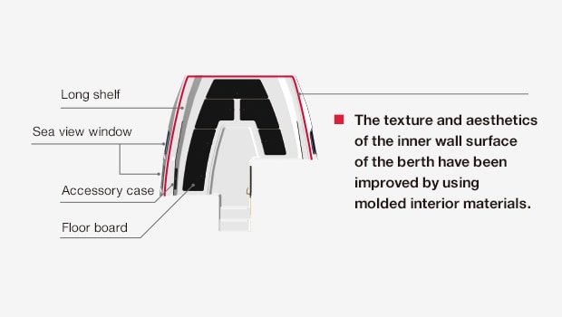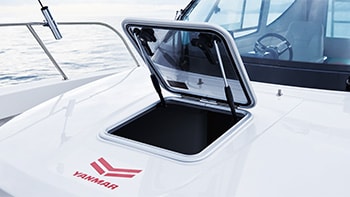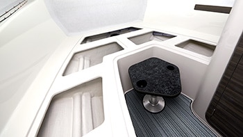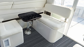 The spacious cabin is specifically designed to create a comfortable and enjoyable atmosphere for you and your guests to enjoy the precious time you spend together. Multiple storage spaces and lockers ensure that everything is always in order. In addition, an inverter air conditioner is standard feature. You can also opt for an optional update to have a land electric device to enjoy a comfortable marina stay.