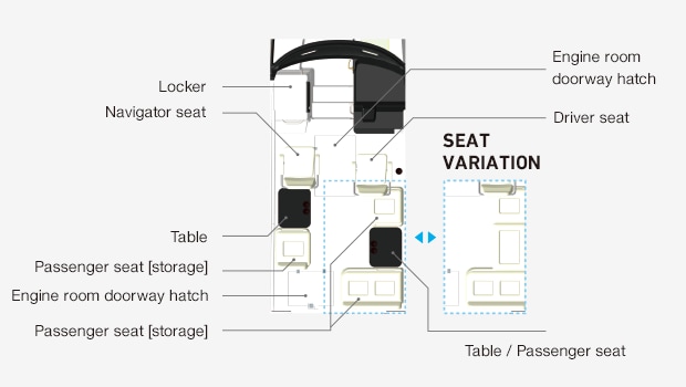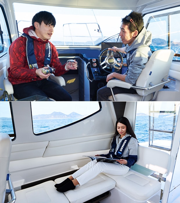 The counter space can accommodate up to two 10-inch class navigation instruments such as a GPS. In addition, for your comfort, the driver's seat comes with armrests and dampers, and can be adjusted to the optimum position.