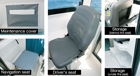 The steering wheel and meters are laid out functionally to ensure good operability and visibility. In the wide counter space, you can install fishfinders, GPS, etc. up to 8 inches.