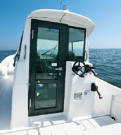 A closed cabin that takes into consideration comfort in bad weather and security when moored. The hinged door type rear door has a large frontage area, so it is easy to enter and exit, and the full glass and fixed rear window provide excellent visibility and daylighting.