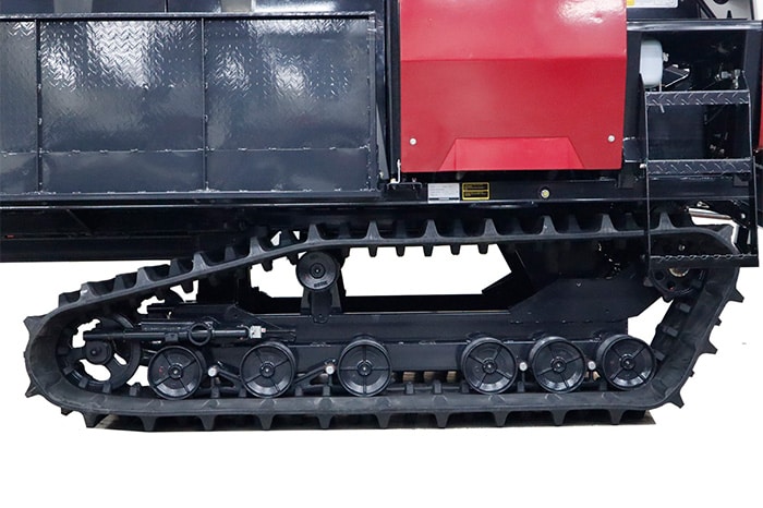 Dengan lebar crawler 550mm, roda carwler hanya mengerahkan relatif kecil tekanan pada tanah, sehingga mesin combine dapat dengan mudah bekerja di lahan basah / berlumpur.