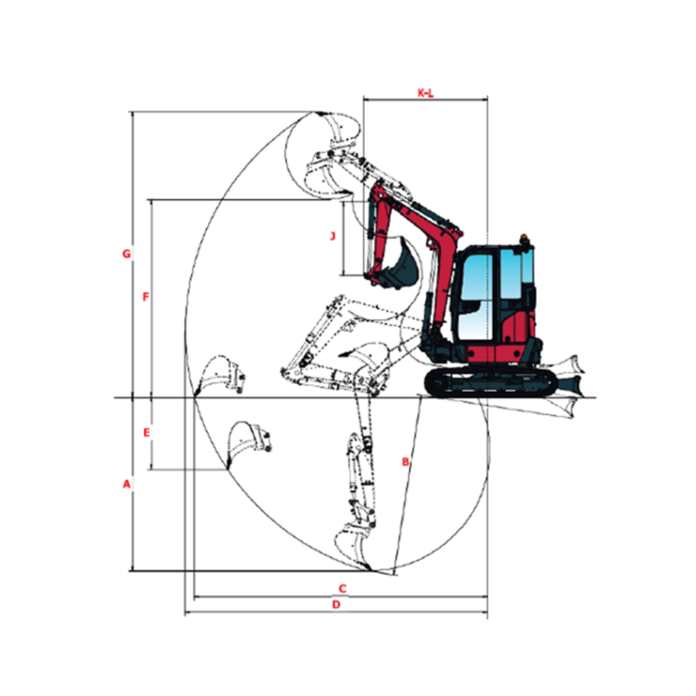 | N | Profondità massima di scavo - lama sollevata | 3 125 / 3 375* mm |