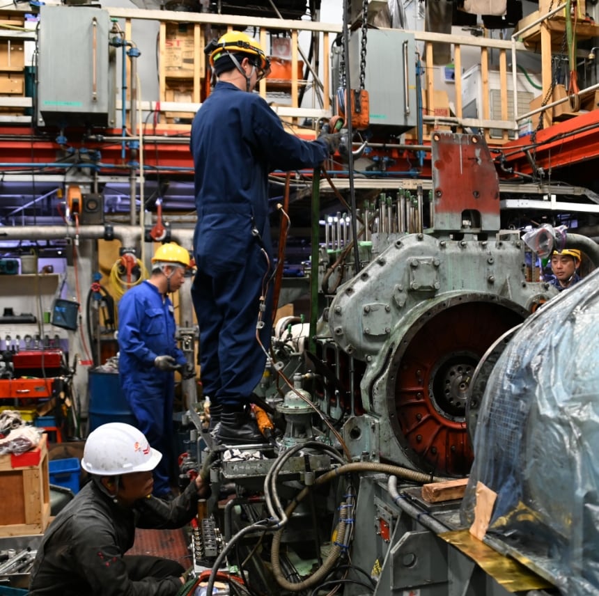 ヤンマーは、こうした過酷な環境下でも電⼒インフラを安定して稼働させるため、発電機の運転‧保守を担う専⾨技術者を現地に派遣し、他の機械担当隊員と協⼒し24時間体制で機器の監視やメンテナンス、トラブル対応を⾏っています。