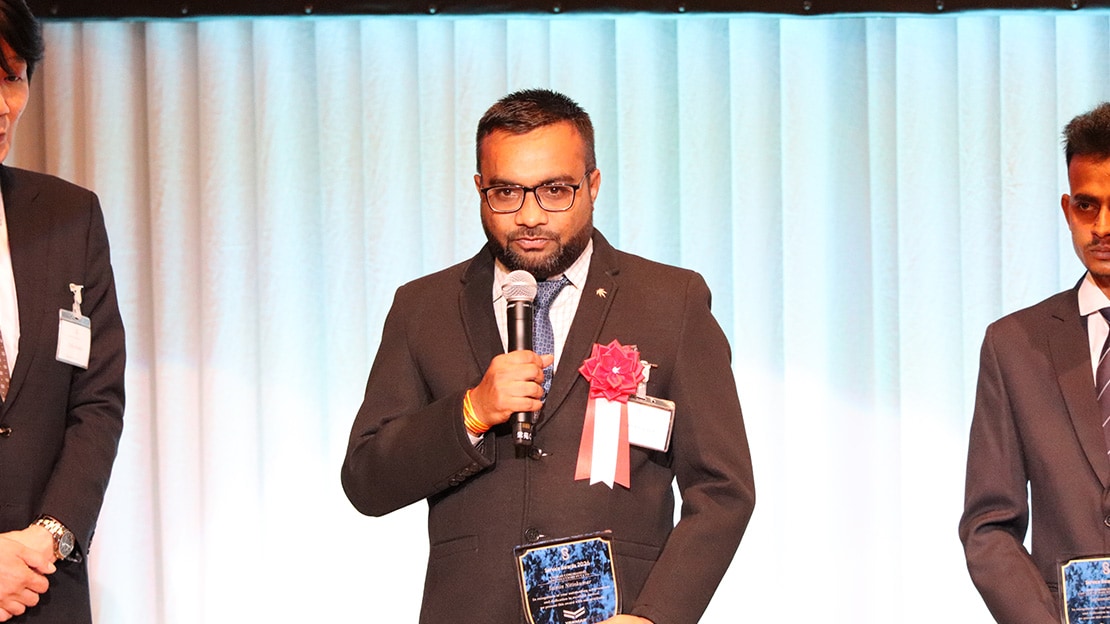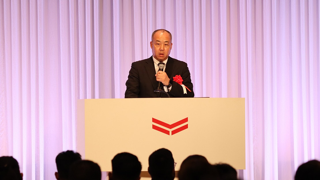 式の冒頭では、これまでのサービスアワードの成果や「HANASAKA」の価値観を紹介するオープニングムービーが上映され、その後、YGCS アルヤン社長の挨拶で式がスタートしました。アルヤン社長は、受賞者への祝辞と参加者への感謝を述べるとともに、アフターセールス事業の役割と重要性、ヤンマーグローバルCSが取り組むお客様へのライフサイクル価値の考え方について紹介しました。また、サービススタッフを支える取り組みに触れ、部品供給や現場支援などを通じて高品質なアフターサービスを提供し、お客様に大きな価値を届けることで、真の顧客満足の実現に挑戦し続けていく決意を表明しました。