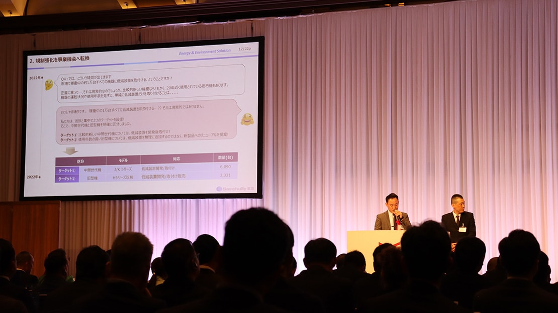 今年度は、ヤンマーグループ33社を対象に選出された国内外の拠点およびディーラーのサービススタッフ、計67名が受賞し、トロフィーが授与されました。また、YANMAR ENGINE MANUFACTURING INDIA PVT LTD.(YEMI)、ヤンマーアグリジャパン株式会社(YAJ)、ヤンマーエネルギーシステム株式会社(YES)からは、アフターサービスの取り組みに関する事例発表が行われ、各地域・事業のサービス活動を共有する貴重な機会となりました。