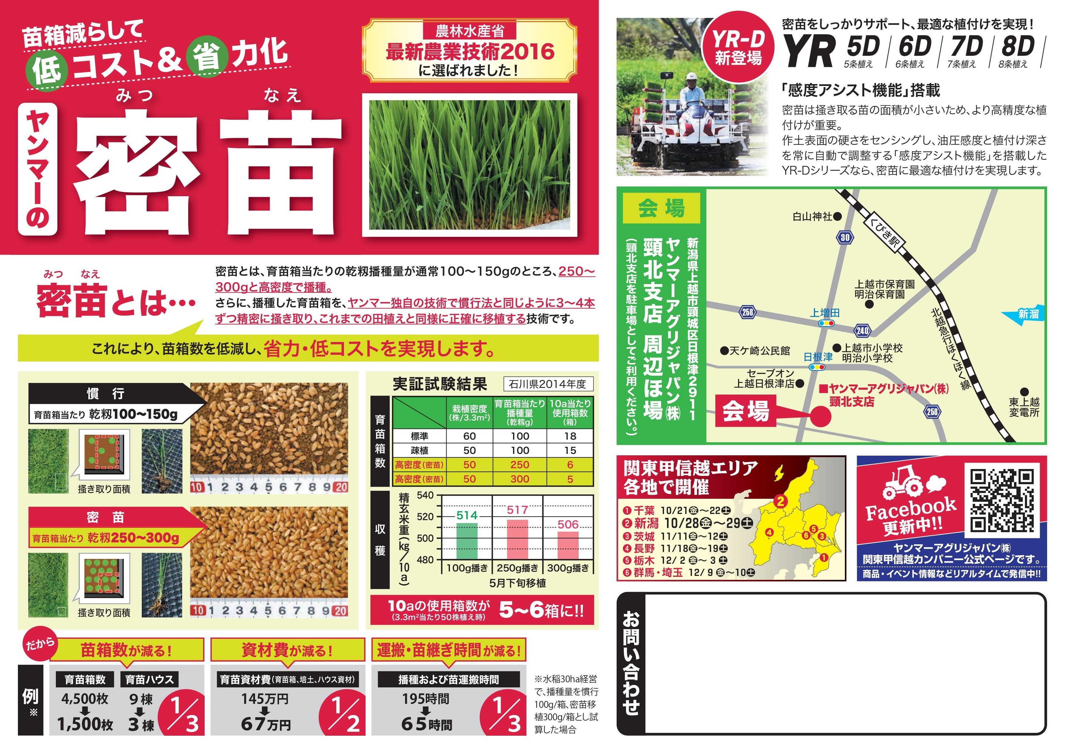 10/28(金)~29(土)の2日間、新潟県は上越市にて『ヤンマー密苗実演会 新潟』を開催致します。