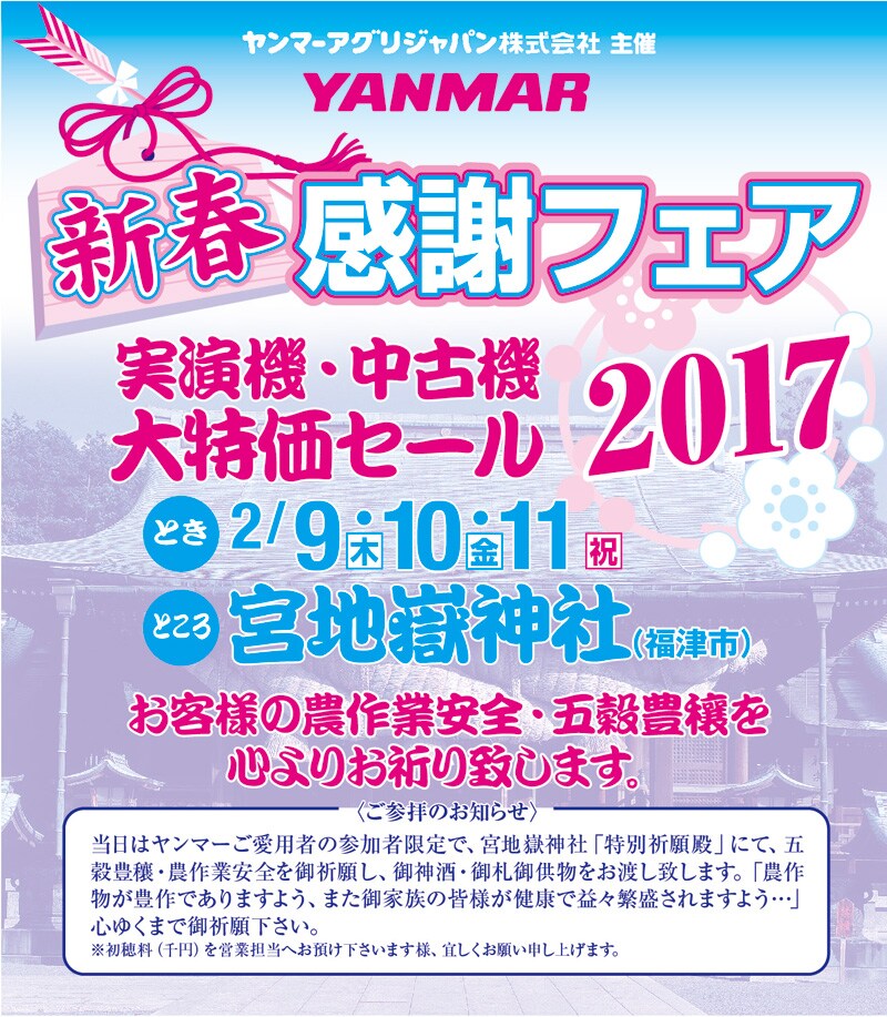 新春感謝フェア 実演機・中古機大特価セール2017 [福岡県]