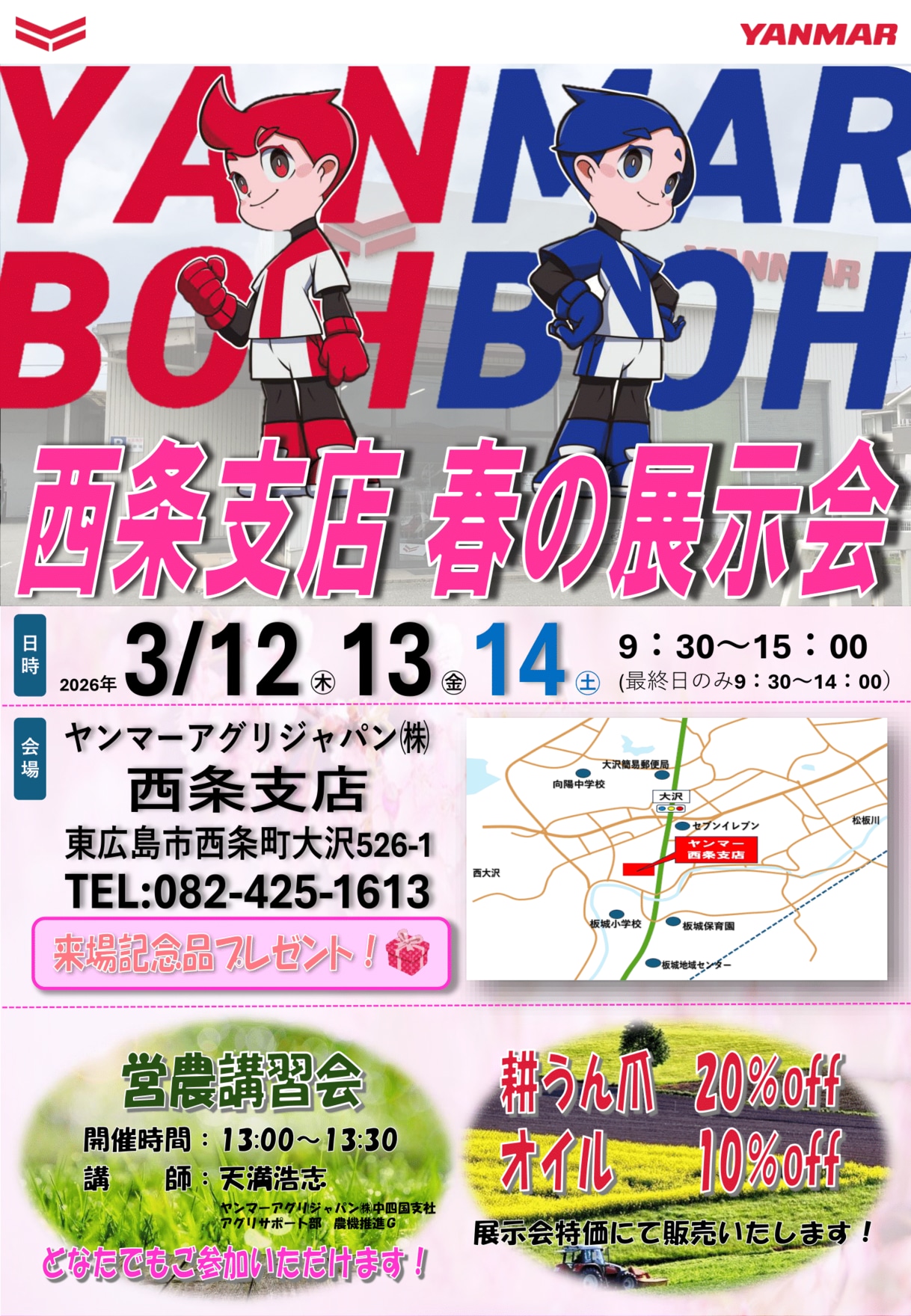 ヤンマーアグリジャパン株式会社 中四国支社 西条支店 TEL: 082-425-1613 |