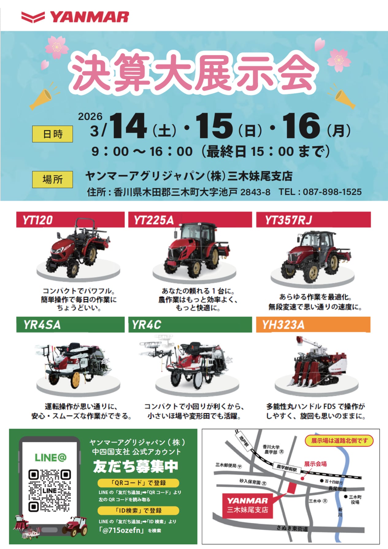 ヤンマーアグリジャパン株式会社 中四国支社三木妹尾支店 TEL: 087-898-1525 |