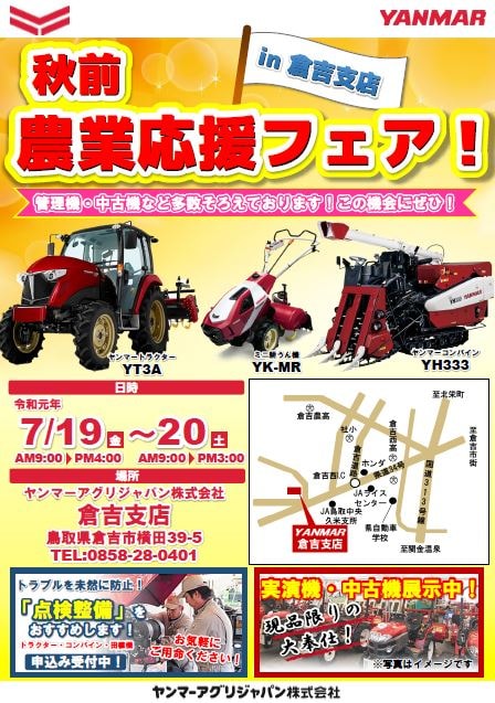 ヤンマーアグリジャパン株式会社 倉吉支店 TEL: 0858-28-0401 |