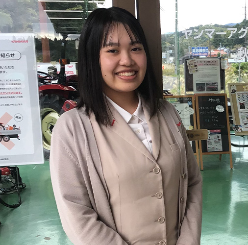 職場は男性ばかりで事務社員は私1人と少し心細い時もありますが、皆さん良い人ばかりで、話をするなかで農業や機械について勉強になります。
