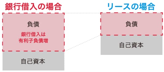 初期費用を抑えることで、その他の投資に資金を回せる他、リース会社を活用することで金融機関からの融資と同等の効果があり、担保不要で銀行借入枠を温存するメリットもございます。