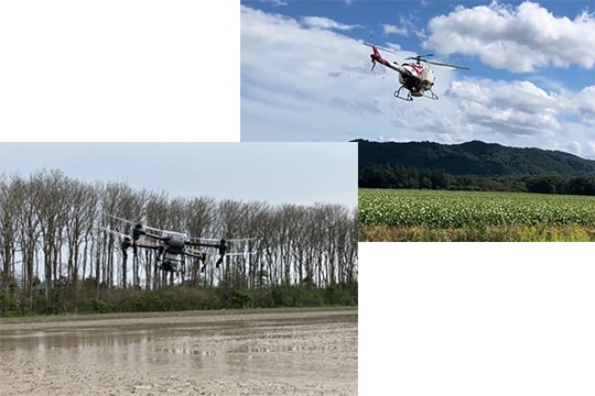 全国どこでも無人ヘリやドローンを使った防除が可能です。経験豊富な技術者を派遣し、的確で効率的な防除作業をいたします。水稲、麦、大豆の防除で農作業をサポートするとともに、松くい虫防除で、日本の景観を守っています。また、短期間で地域一斉防除が完了し、最大限の効果を見込めます。