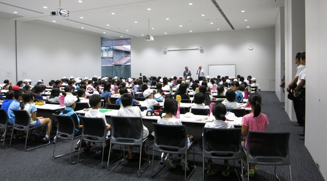 フローティングスクール(研修室で説明を聞くこどもたち)