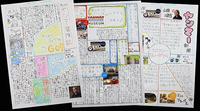 また、地元の中学1年生の総合学習では、ヤンマー創業者をテーマに取り上げてもらい、当館による「山岡孫吉人物伝」講習や見学を通じて、山岡の人物像や功績、ヤンマーの企業活動について学んでもらいました。見学後には、体験学習の成果をまとめた「ヤンマー新聞」を生徒の皆さんで作成されるなど、当社や郷土への興味が多岐にわたって深まり、総合学習として期待以上の成果が生まれたとの喜びの声をいただきました。
