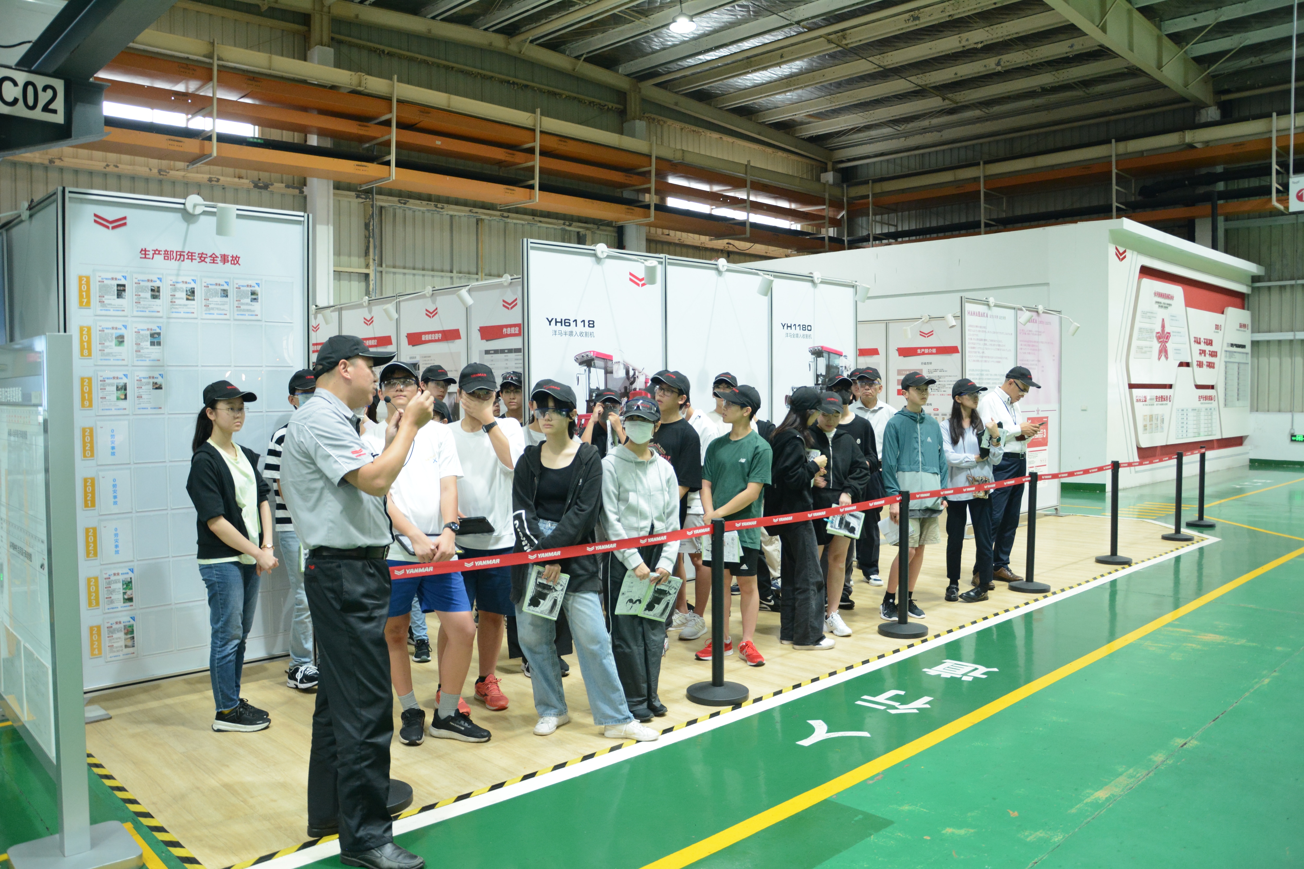 2024年10月16日、洋馬農機(中国)有限公司(以下、YNC) は上海日本人学校浦東校中学部の2年生の学生を28名受け入れ、会社・工場見学を実施しました。 YNCの宣伝ビデオ、ヤンマーの南極での活動、YANMAR TOKYOの紹介ビデオを介して、学生たちにヤンマーが多様な事業活動を行っていることを紹介しました。