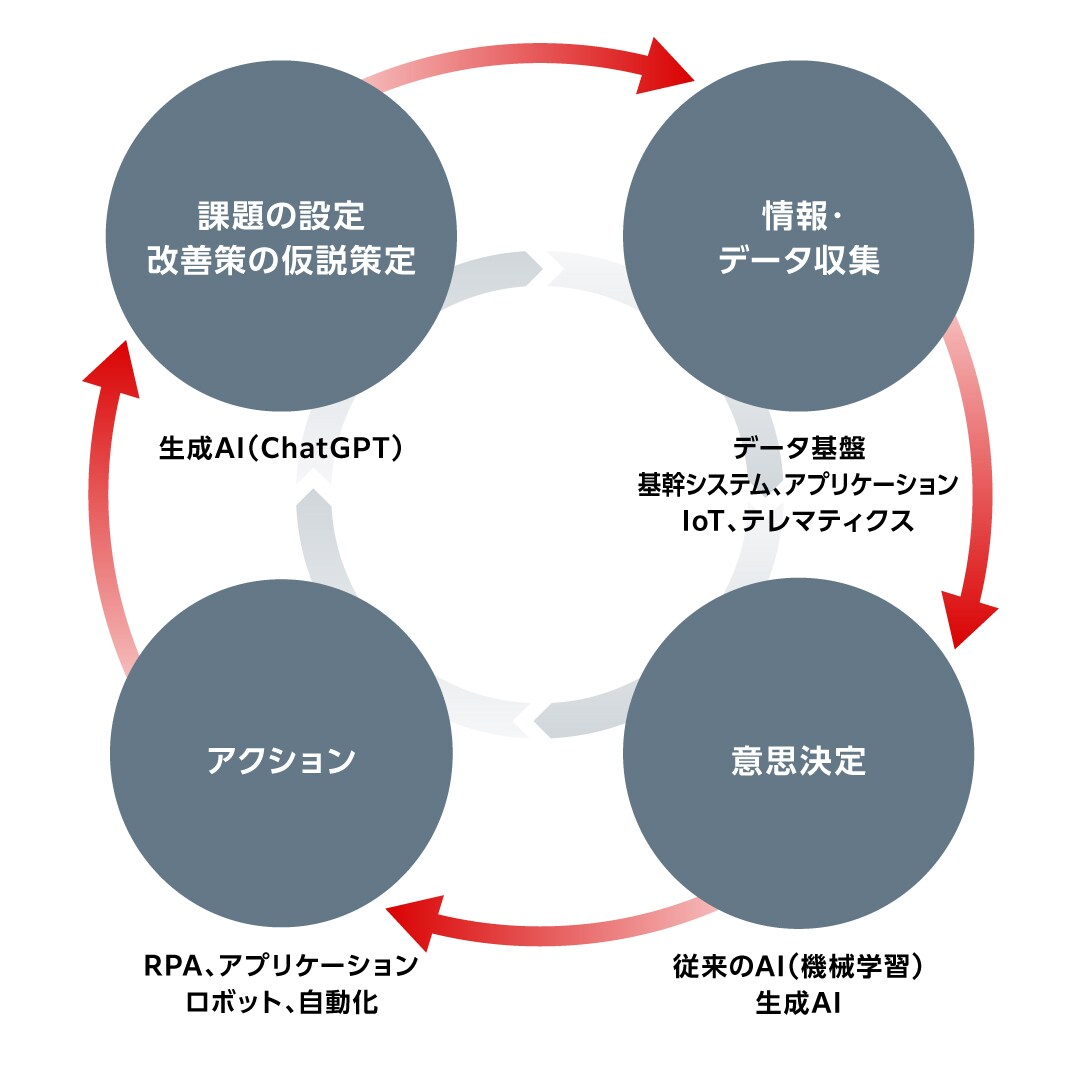 更に各バリューチェーンやソリューションへのAIの実装、データ基盤のデータを統合的に活用可能なAIの実装を進め、より高い価値提供をAIの進化と共に実現します。