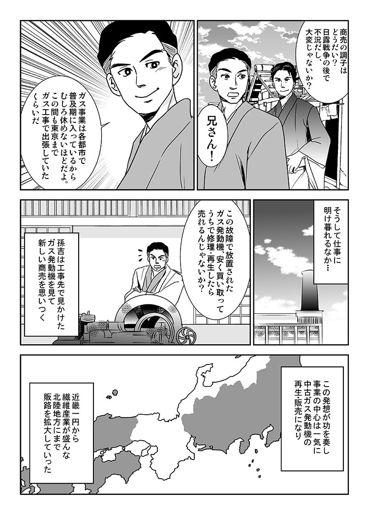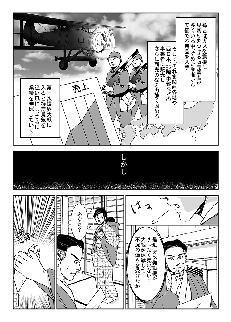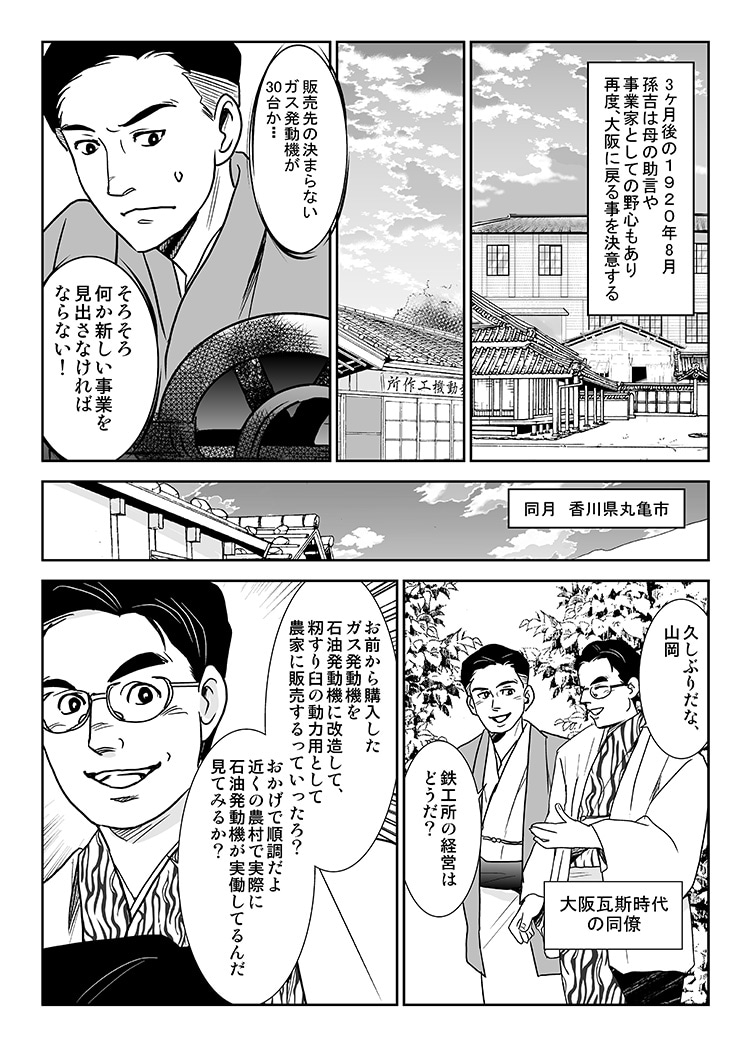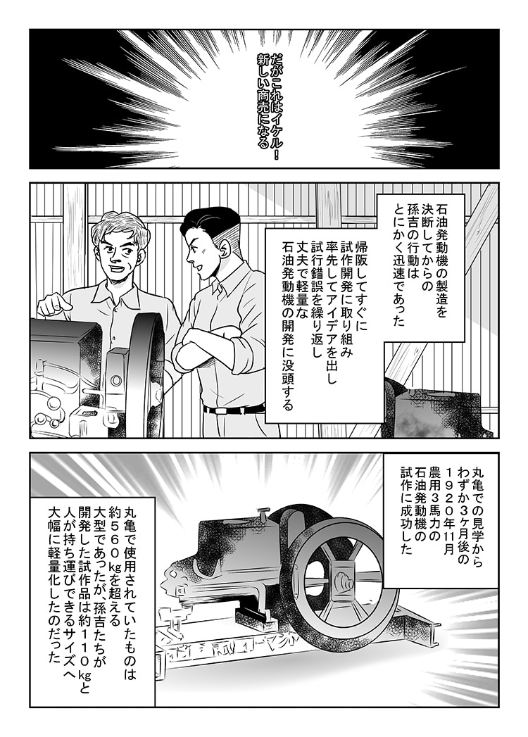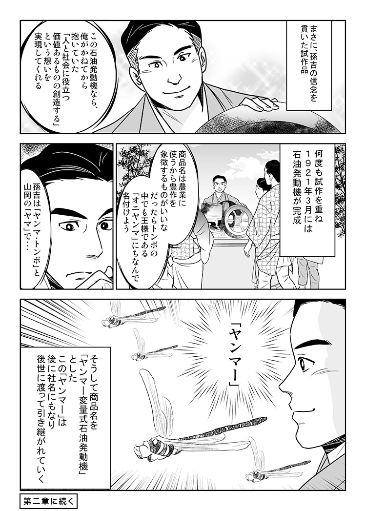 第一章では、孫吉の誕生からヤンマーの原点ともなる石油発動機の開発までを紐解いていく。