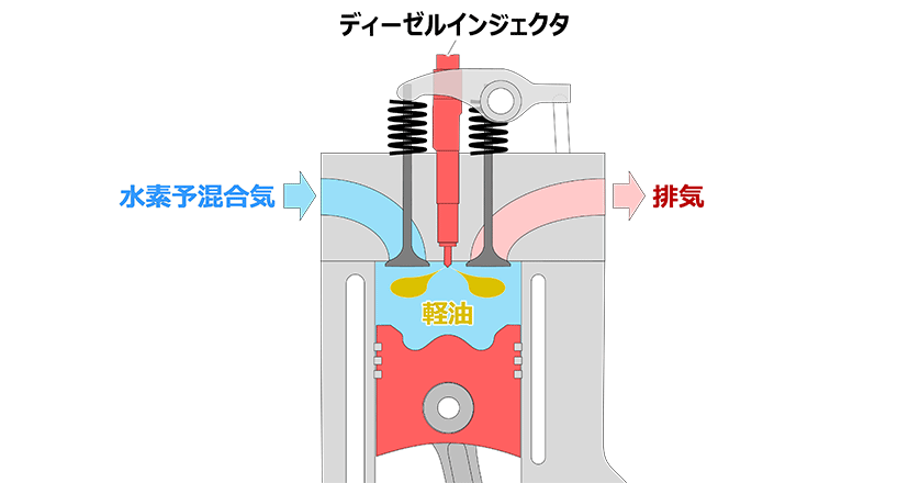 の向上を図るためには、吸気行程中の吸気ポートへの水素間欠噴射や筒内直接噴射などを採用し、吹抜けを抑制する必要がある。